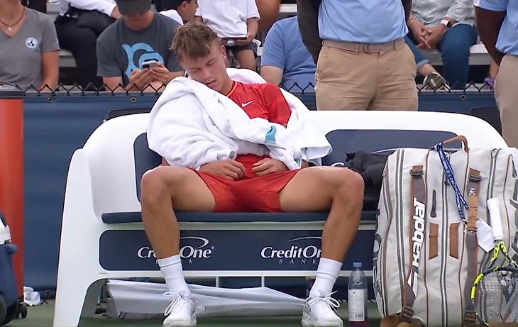 Хольгер Руне получил тепловой удар по ходу матча второго круга «Мастерса» в Цинциннати против Нуну Боржеса, пишет Punto de Break.