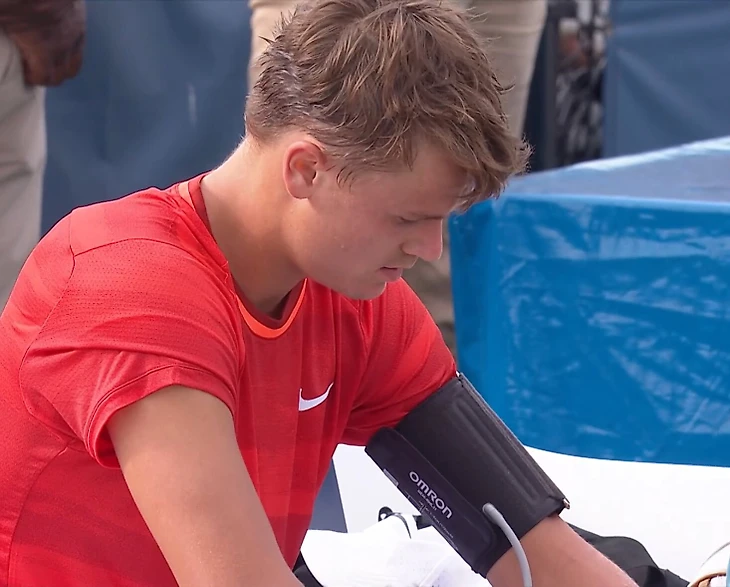 Это произошло на одном из переходов во втором сете. При счете 1:2 у датчанина измерили давление и уровень сахара в крови, после чего он продолжил игру.