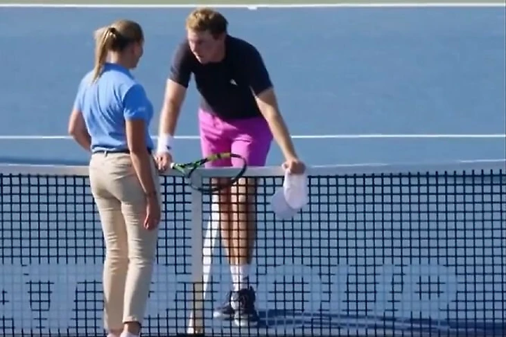 Она поговорила со зрительницей и вынесла американцу устное предупреждение. В итоге Микельсен уступил Лоренцо Сонего (0:6, 3:6).