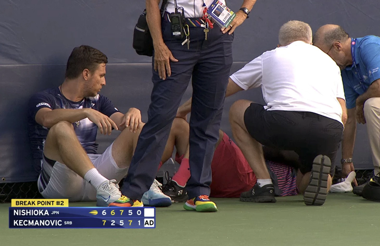 Японец не доиграл встречу против Миомира Кецмановича и снялся при счете 6:7(2), 2:6, 7:5, 5:7, 0:1.