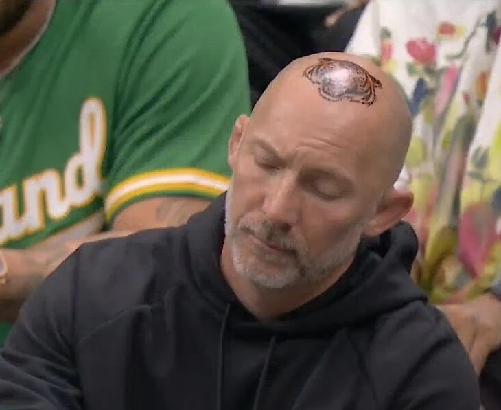 Тренер по физподготовке Арины Соболенко Джейсон Стейси пришел на финал US Open с переводной татуировкой тигра на голове.