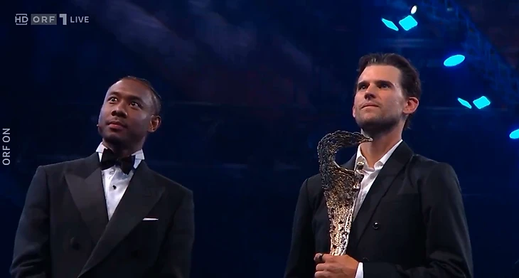 РФ (на немецком): «Дорогой Доминик, поздравляю с наградой и результатами твоей работы. Мне нравилось играть против тебя. Теннису будет очень тебя не хватать. Ты всегда был замечательным человеком на корте и за его пределами, честным и справедливым. Наша дружба всегда была очень для меня важна. И мне приятно, что мы так хорошо ладим, хотя были соперниками по туру.