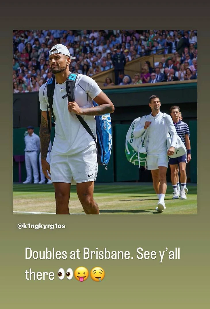 Кириос репостнул в сторис фото с финала «Уимблдона»-2022 и подписал: «Парный разряд в Брисбене. Увидимся с вами там».