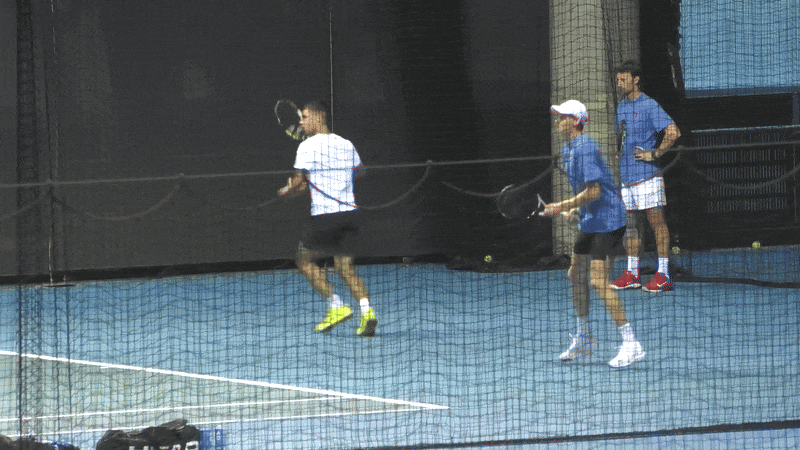 В воскресенье на Australian Open идет дождь, поэтому первая и третья ракетки мира тренировались в зале. Каждый занял по половине корта.