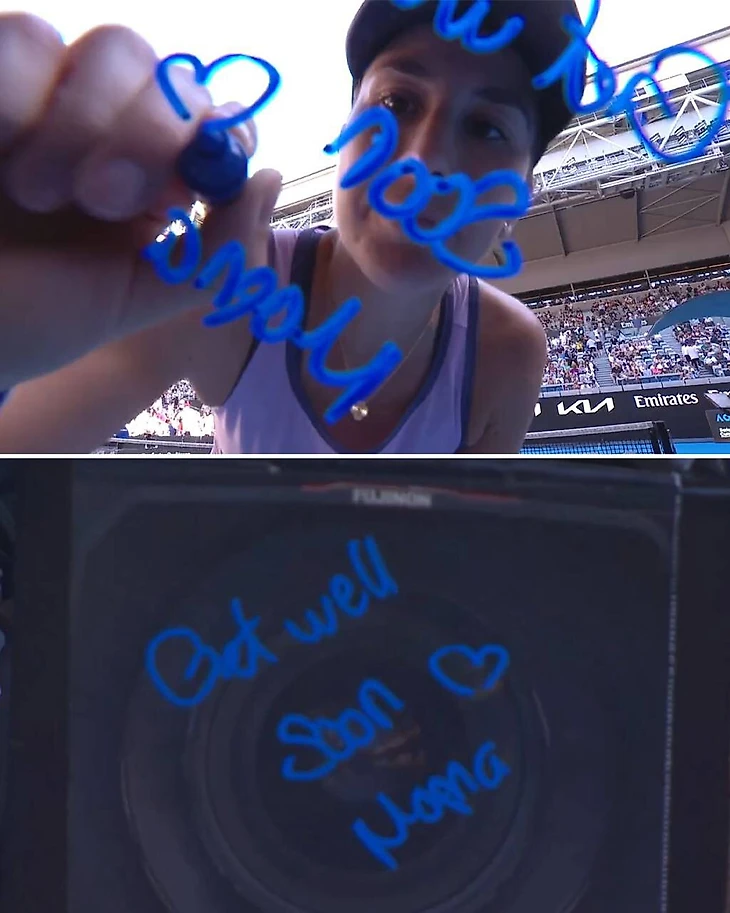 Бенчич после матча написала на камере: «Поправляйся поскорее, мама».