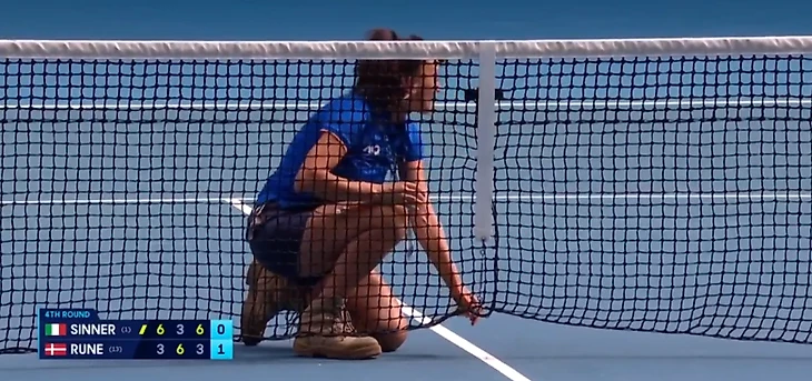 Матч Синнера и Руне прервали, потому что итальянец подачей сломал сетку