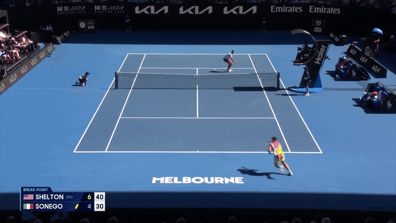 В начале второго сета матча с Беном Шелтоном итальянец отыграл брейк-пойнт, пробив с лета так, что мяч отскочил обратно на его половину корта.