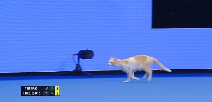 В начале решающего тай-брейка на корт выбежал кот, который также появлялся на прошлой неделе во время женского турнира.