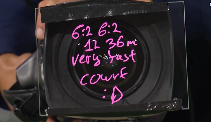 В интервью после матча Медведев пояснил эту надпись: «Это, наверное, самый медленный корт в моей жизни.
