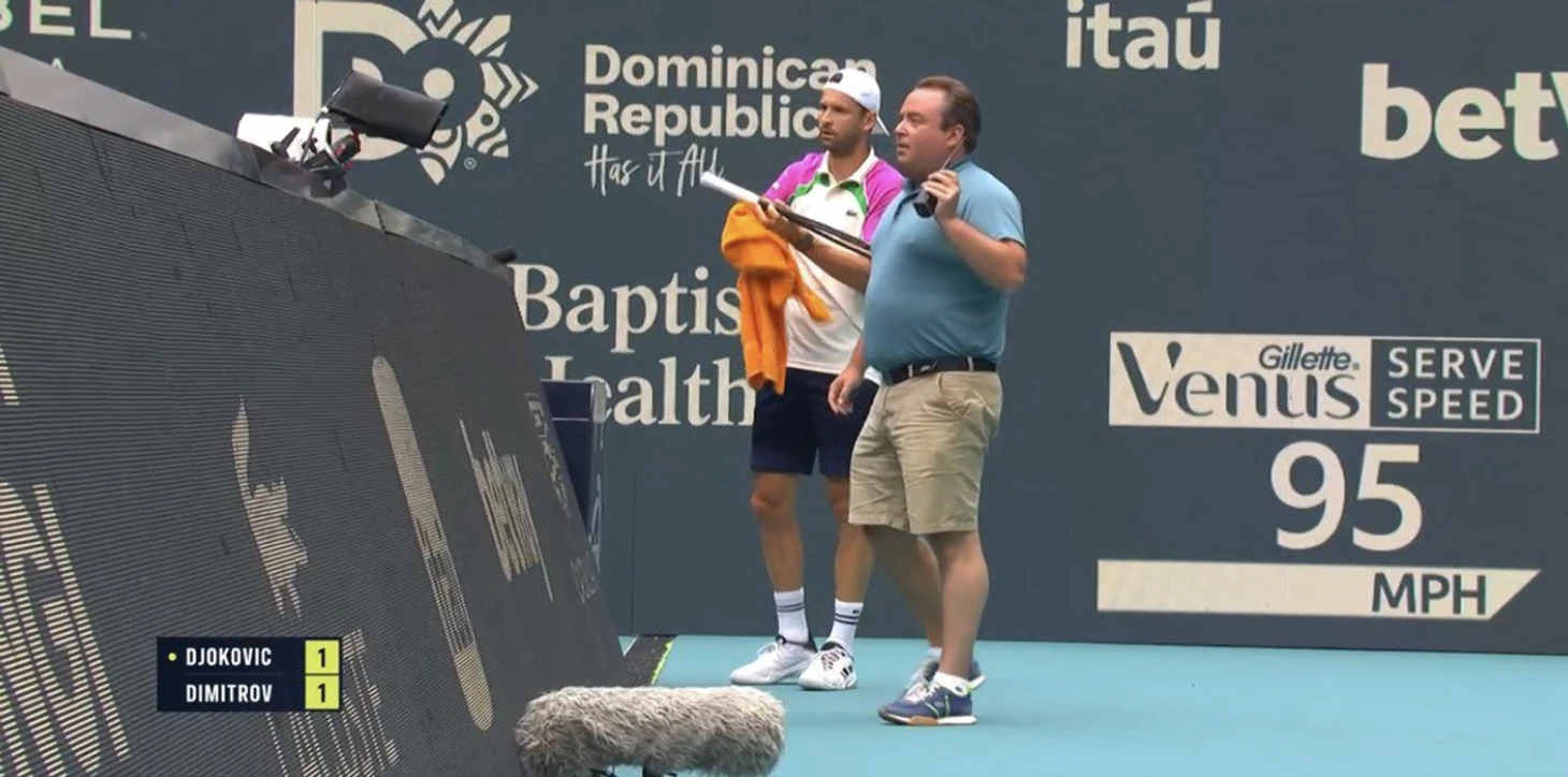 Судья Грег Алленсворт спустился с вышки, подошел к Димитрову и вызвал по рации охрану, чтобы болельщика вывели со стадиона. После этого игра возобновилась.