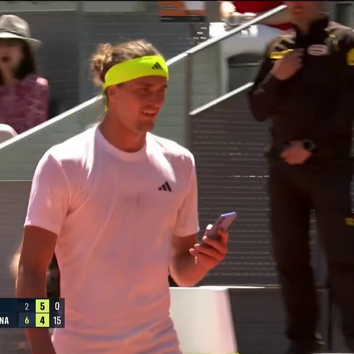 При счете 2:6, 5:4 Звереву показалось, что мяч после удара испанца ушел в коридор, но автоматическая система определения аутов решила иначе. Зверев начал спорить с судьей на вышке Мохамедом Лайани, но тот отказался менять решение. Тогда немец попросил его спуститься с вышки и просто посмотреть отметку.