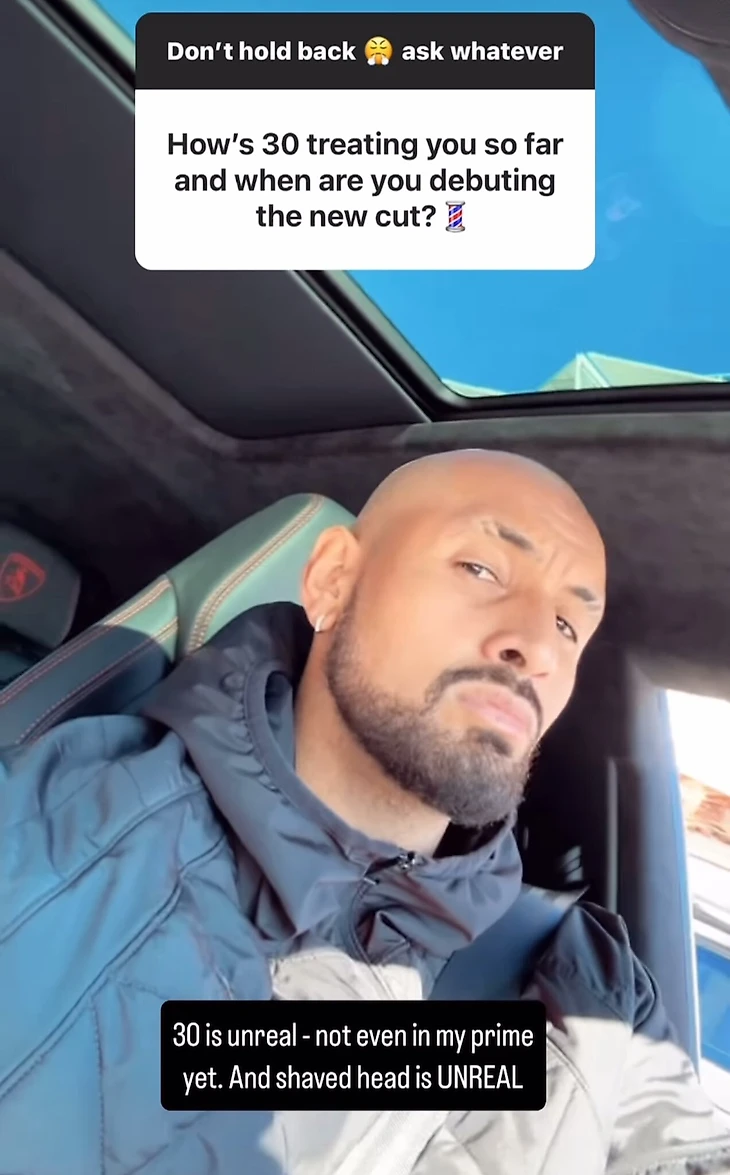 – 30 – это нечто! Я еще даже не на пике. А лысая голова – просто НЕРЕАЛЬНО! – ответил Кириос подписчику в инстаграме.