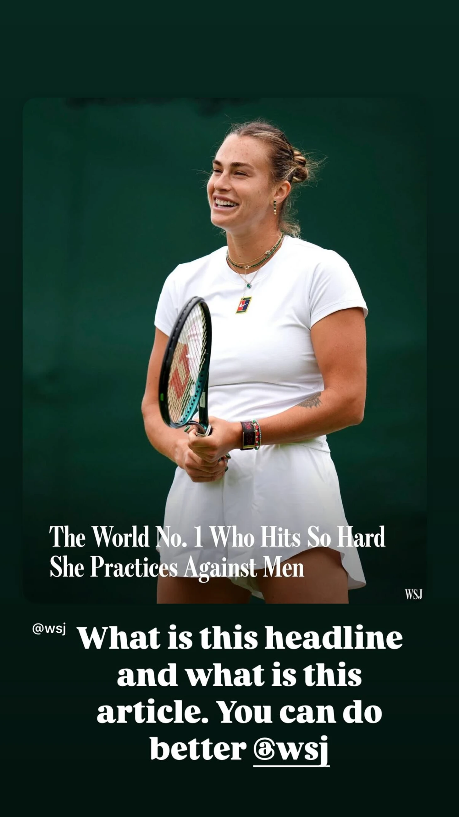 На прошлой неделе The Wall Street Journal опубликовал статью под заголовком «Первая ракетка мира бьет так сильно, что тренируется с мужчинами».