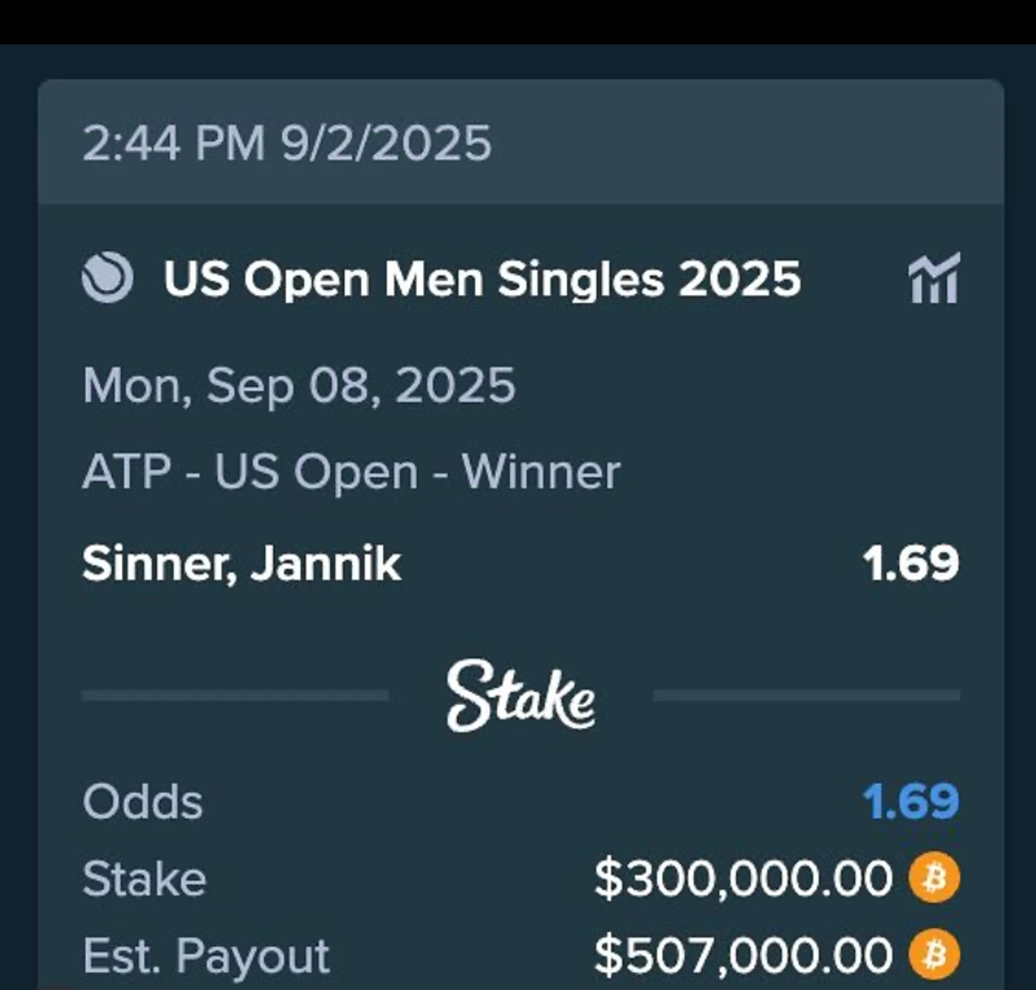 В прошлом году Дрейк поставил на Тэйлора Фрица в финале US Open против итальянца, но ставка не сыграла, а в финале Australian Open-2025 верно предсказал победу Янника.