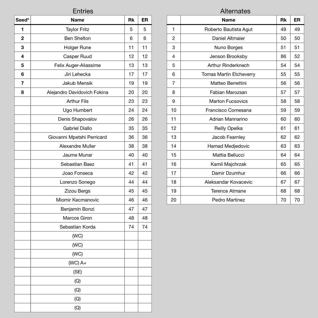 Фриц, Руне, Рууд и Фонсека заявились на турнир в Базеле
