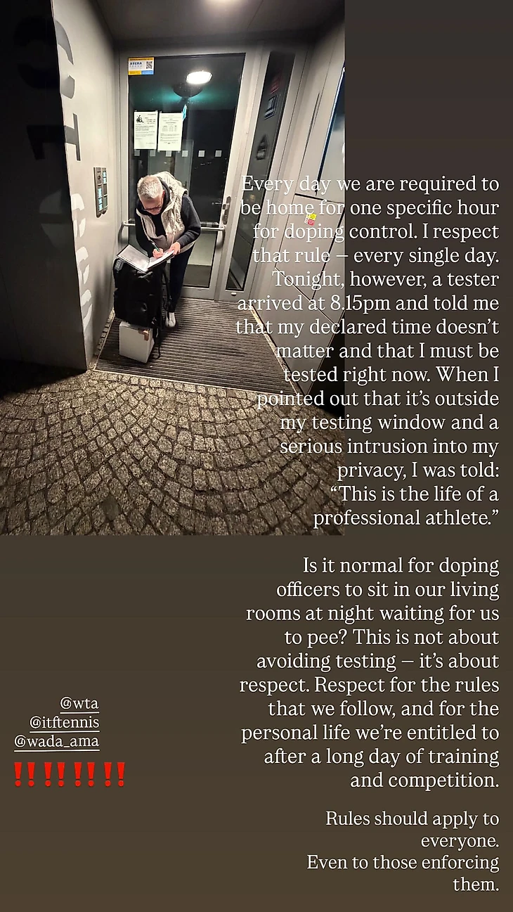 Правила должны применяться для всех. Даже для тех, кто требует их исполнения», – написала Вондроушова в сторис инстаграма, отметив аккаунты WTA, ITF и WADA.