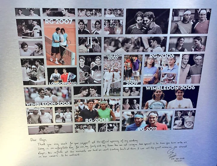 Рафа в ответ сказал, что счастлив разделить с Роджером это событие, и подарил ему коллаж всех их встреч с трогательной подписью.