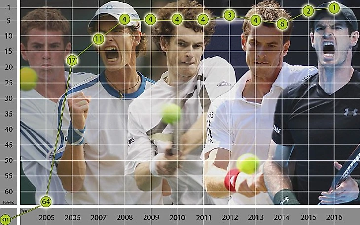Daily Mail иллюстрирует путь Энди Маррея к вершине рейтинга по годам: