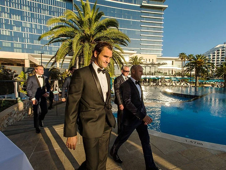На турнирную вечеринку швейцарец отправился в классическом смокинге.