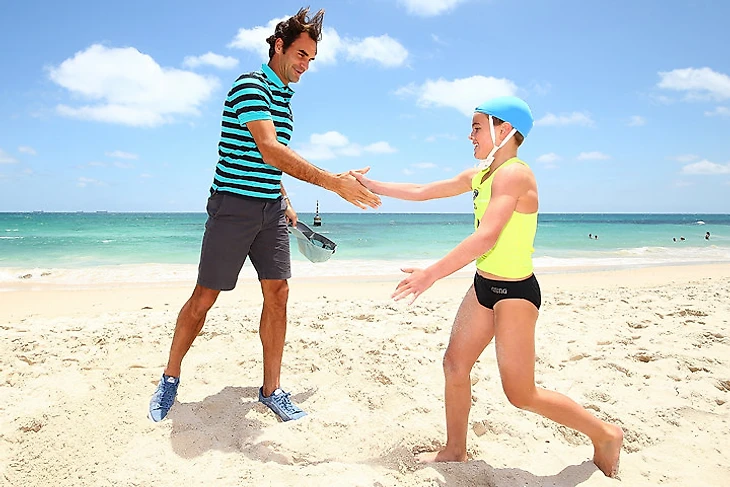 Еще Федерер выступил судьей в соревновании молодых спасателей.