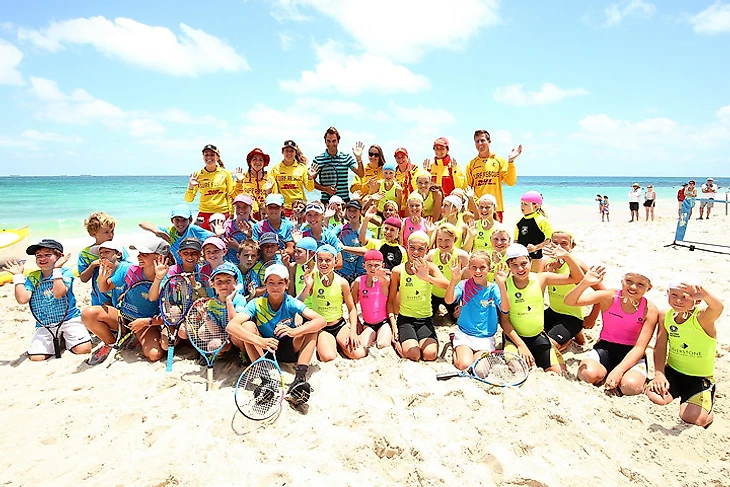30 декабря Роджер тусовался на пляже с теннисными юниорами и молодыми спасателями.