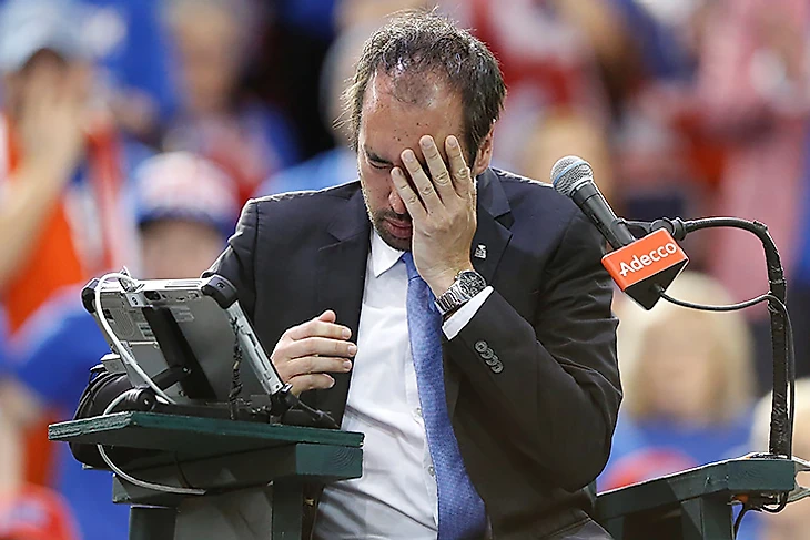 Возможно, давление ожиданий стало одной из причин фрустрации Шаповалова, когда, проиграв два сета и свою подачу в третьем, он от досады выбил мяч с корта. Заурядная ситуация приобрела неожиданный оборот, когда мяч попал прямо в глаз судье на вышке Арно Габа, так что теннисист был снят с матча за неспортивное поведение.