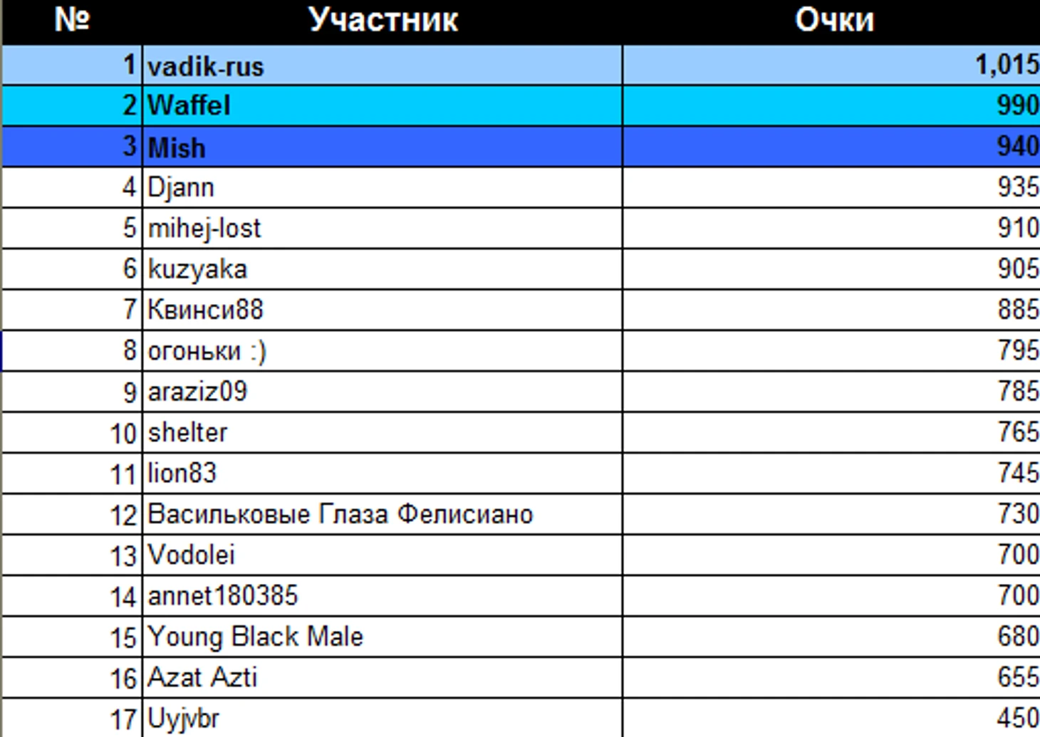 Победителям 5-го тура становится vadik-rus Поздравляю!