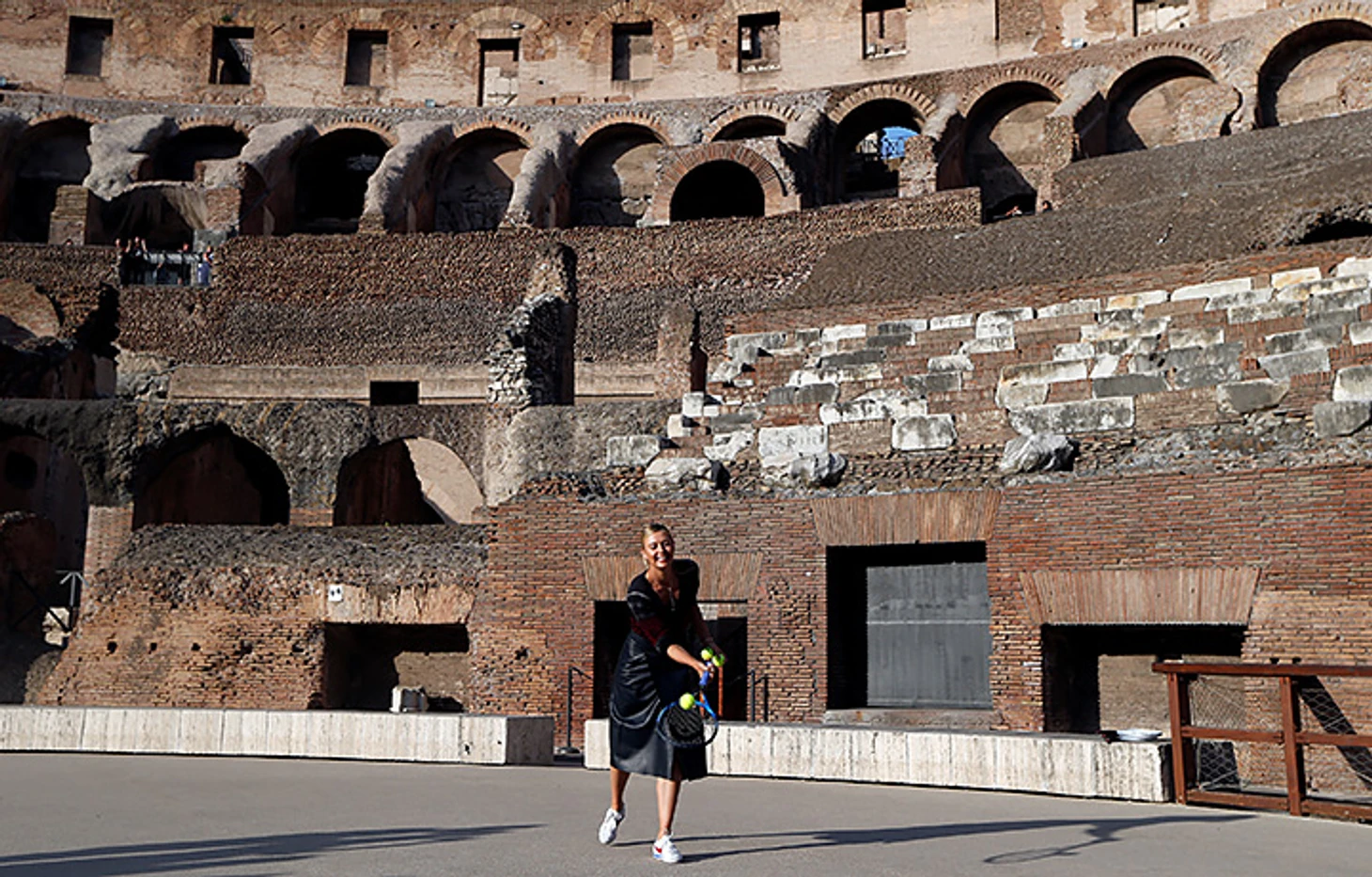 В преддверии турнира в Риме трехкратная чемпионка Мария Шарапова в компании чеха Томаша Бердыха посетила Колизей. В античный амфитеатр они заглянули примерно на полчаса, и за это время успели немного поиграть и много пофотографироваться. Интересно, что итальянский канал Super Tennis транслировал этот визит в прямом эфире (и наверняка не из-за Бердыха). В общем, Рим охватила Мария-мания.