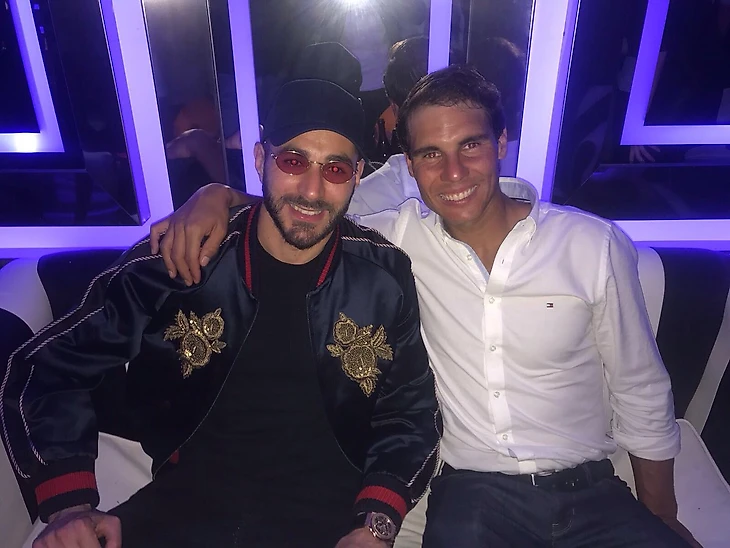 Кадр дня. Бензема и Надаль отмечают победу Рафы в Мадриде