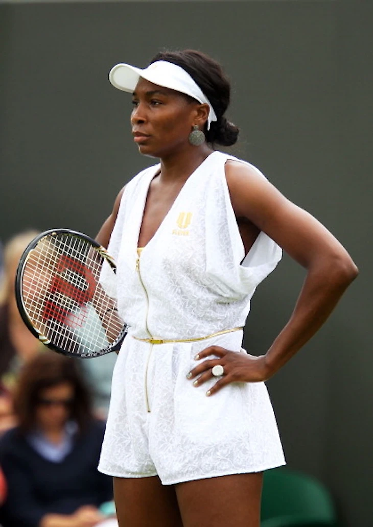 Винус Уильямс в начале десятых удивляла два года подряд: в 2010-м платьем в стиле диско, а в 2011-м – ромпером с золотой отделкой.