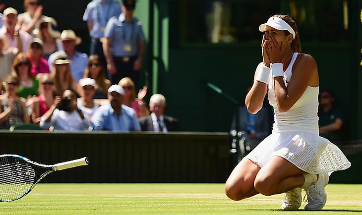Гарбинье Мугуруса в 2015-м в свой первый шлемовый финал для самой себя неожиданно вышла именно на «Уимблдоне», одетая в современный наряд из топа на молнии и юбки в сетку.