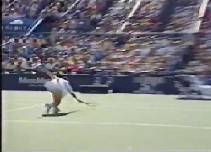 Проиграв первое очко на подаче Граф ударом в сетку Аранта со злости пнула мяч со всей силы, настолько сильно она хотела победить