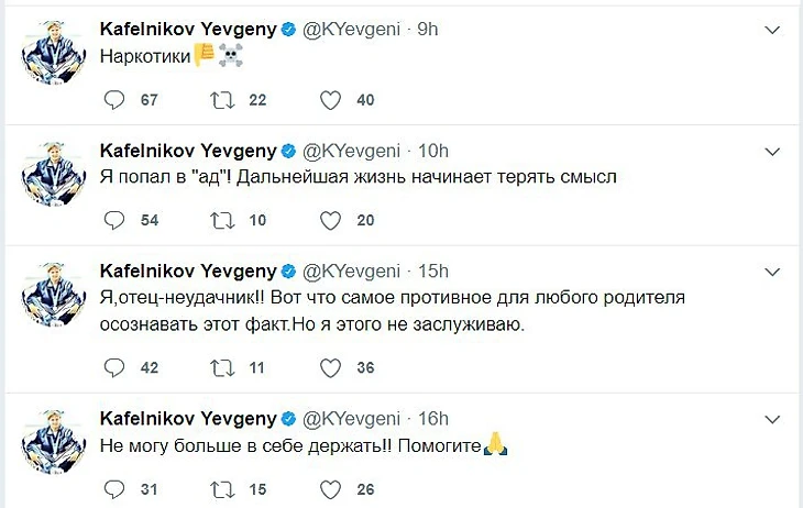 Перед появлением этой новости Кафельников в твиттере называл себя плохим отцом и намекнул на то, что проблемы дочери связаны с наркотиками.