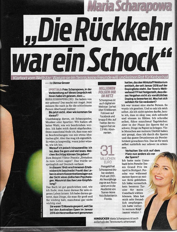 Sport Bild:Госпожа Шарапова, при подготовке этого разговора с вами я прочитал, что...