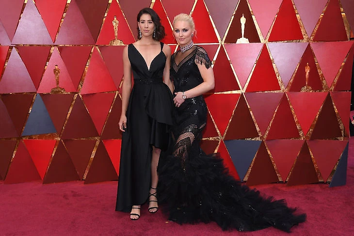 На ковровой дорожке 24-летняя Мугуруса позировала с лыжницей Линдси Вонн,