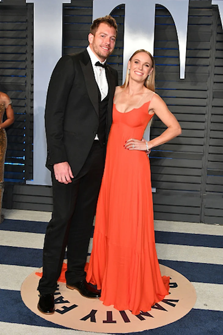 На Vanity Fair party была и чемпионка Australian Open Каролин Возняцки в платье нью-йоркского бренда Honor со своим женихом Дэвидом Ли: