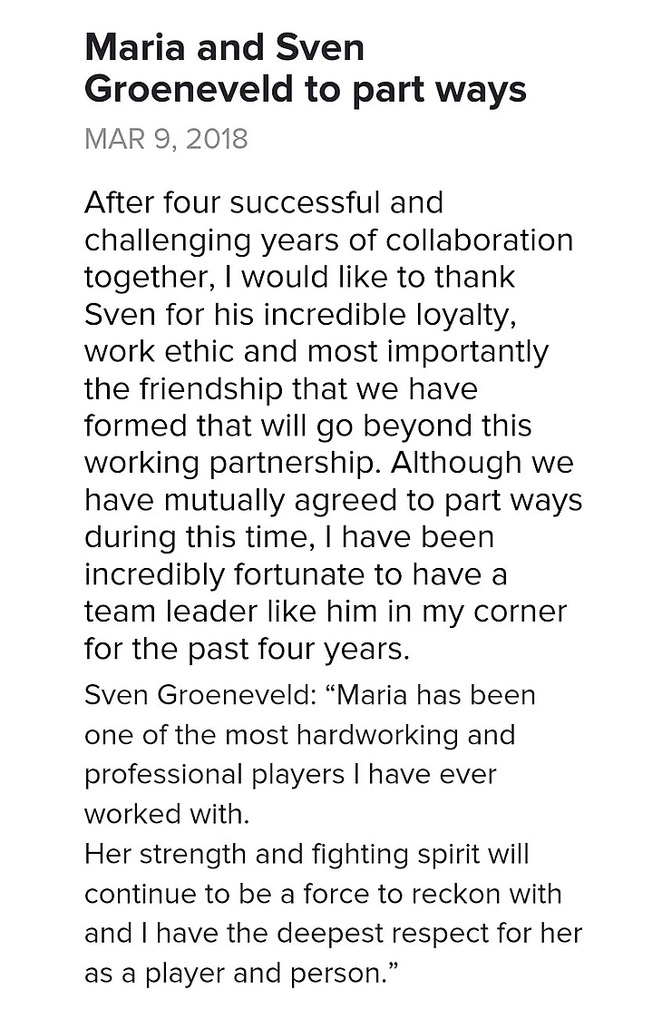 Мария прекратила многолетнее сотрудничество со своим тренером Свеном
