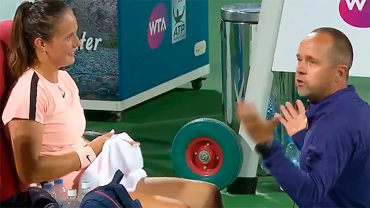 Второй эпизод – это ее разговор с тренером Филиппом Дехасом во время матча с Йоханной Контой на турнире в Дубае. После общения с тренером Касаткина отыграла два матч-пойнта и выгрызла у британки победу в матче.