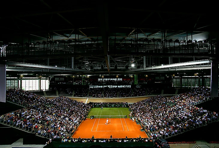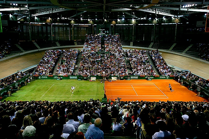 2 мая на этом корте состоялся самый необычный теннисный матч со времен Битвы полов в 1973-м: Федерер и Надаль, две главные теннисные звезды, сыграли на корте, совмещающем их коронные покрытия. Перед матчем Федерер, на тот момент не проигрывавший на траве 48 матчей (включая четыре «Уимблдона» подряд), говорил:
