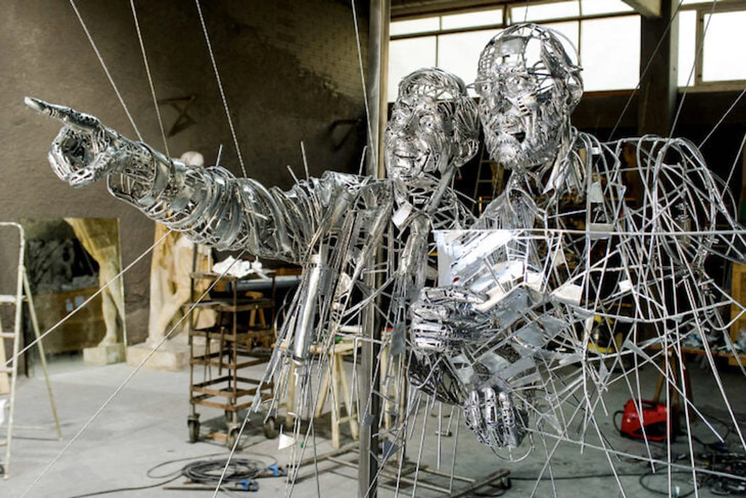 у скульптора свой почерк, фактура и держащие тросики.