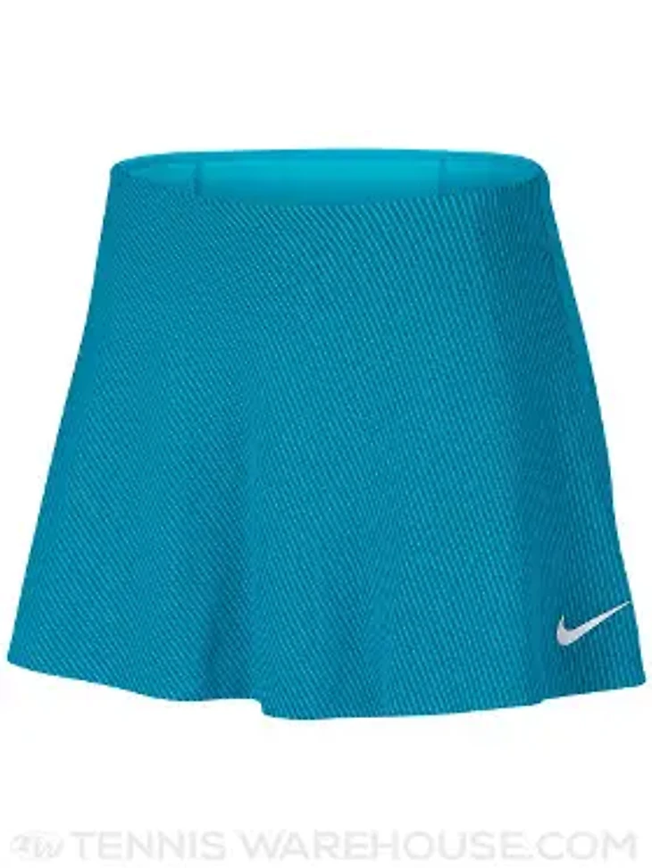 Эжени Бушар примеряет коллекцию Nike Summer Zonal Cool Slam Tank в ледниково- синем цвете и юбку соответствующего цвета.