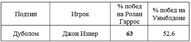 Подтип 1. Дуболомы. Обладают мощными ударами с отскока, при игре слета действуют на низком/среднем уровне.