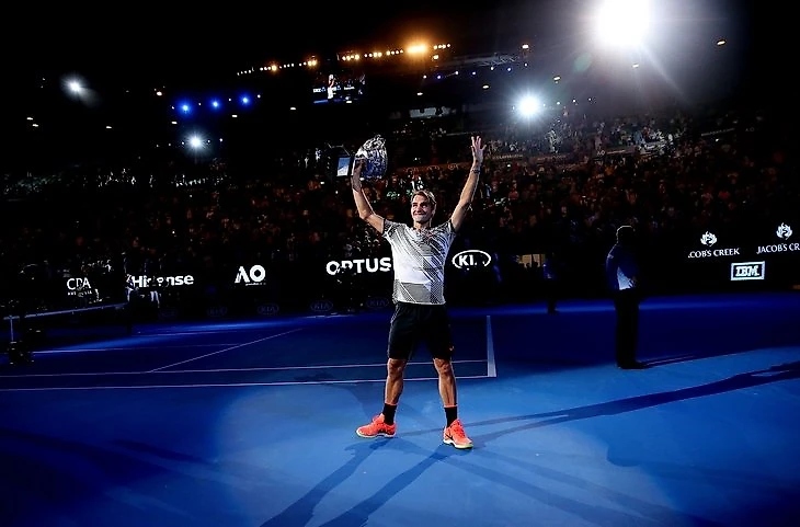 Обычно Федерер играет в однотонных футболках, но на Australian Open-2017 он триумфально вернулся в тур с геометрическим принтом, и это выглядело шикарно.