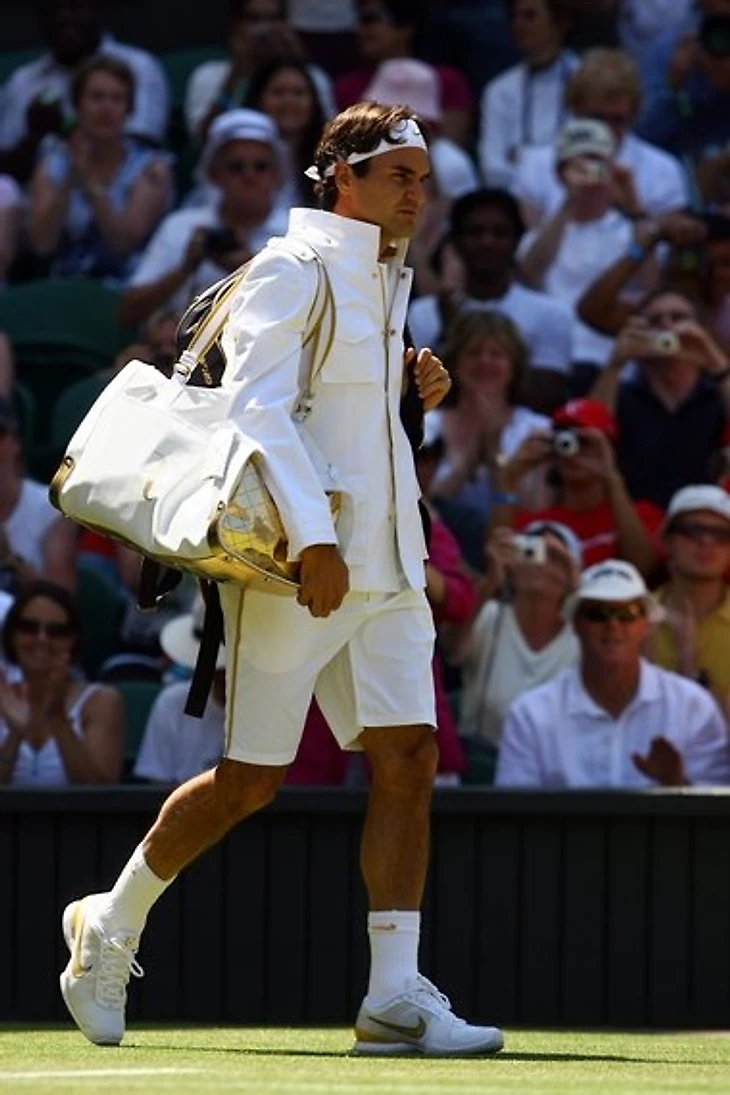 Но самые выдающиеся наряды Федерер носил на «Уимблдоне». В 2007 году он выходил на корт в брюках и пиджаке.