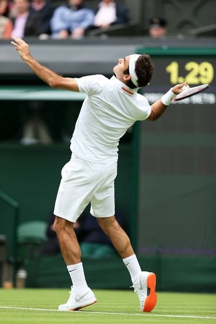 Иногда легендарной становится одна деталь уимблдонского наряда. Например, в 2013-м фурор произвели кроссовки с оранжевой подошвой – правда, Роджер провел в них всех один матч, после чего организаторы попросили его надеть что-нибудь с более нейтральной подошвой.