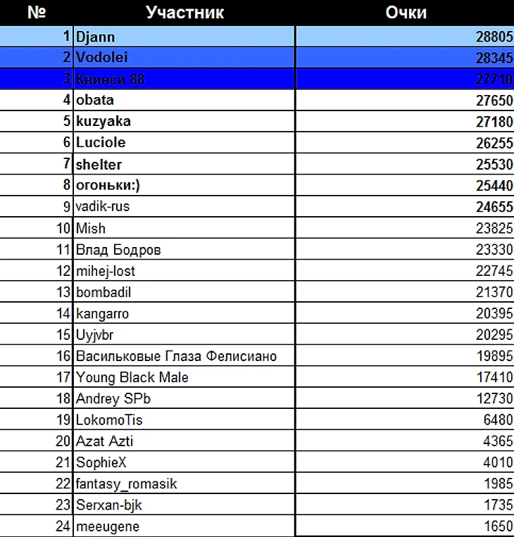 Победителям 13 тура становятся Uyjvbr Поздравляю!