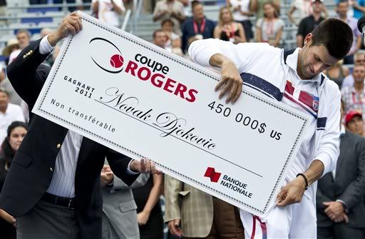 Первая ракетка мира обыграл шестого сеянного американца Марди Фиша в трех партиях 6-2, 3-6, 6-4 за 2 часа и 23 минуты в финале Кубка Роджерсаи и завоевал свой девятый в 2011 и 27-й титул в карьере!