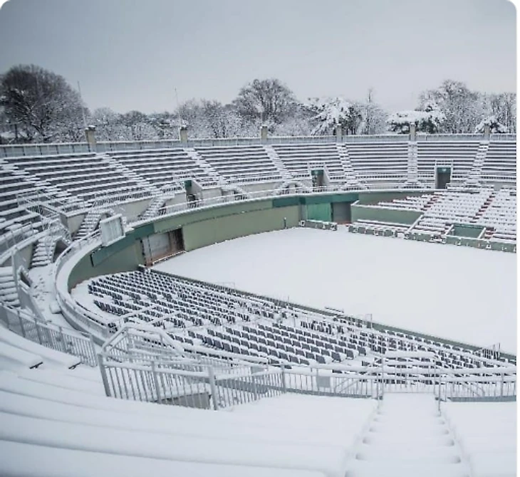 Появилась даже возможность сравнить заснеженный Ролан Гаррос нынешнего года и прошлого. Первая картинка - 2018 год, вторая - 2017...