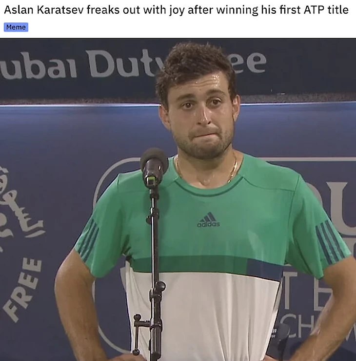 Неправдоподобный взлет Аслана Карацева за последние шесть недель сделал его не только самым обсуждаемым человеком в теннисе, но и героем бесконечных мемов: обладателем гигантских икр и классическим убийцей топов