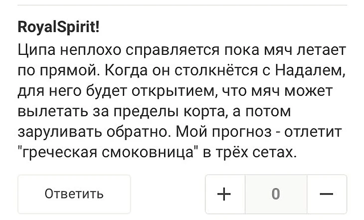 «Грек отлетит в трех сетах». Пользователи Трибуны уверены в победе Надаля